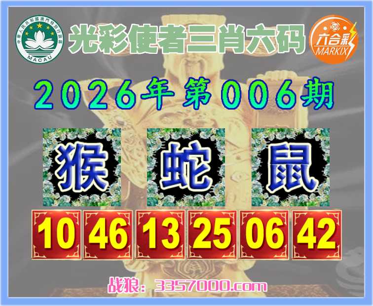 006期:【光彩使者】 🩴三肖六码🩴【猴鼠】开:蛇13