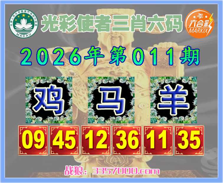 011期:【光彩使者】 🩴三肖六码🩴【鸡马】开:羊11