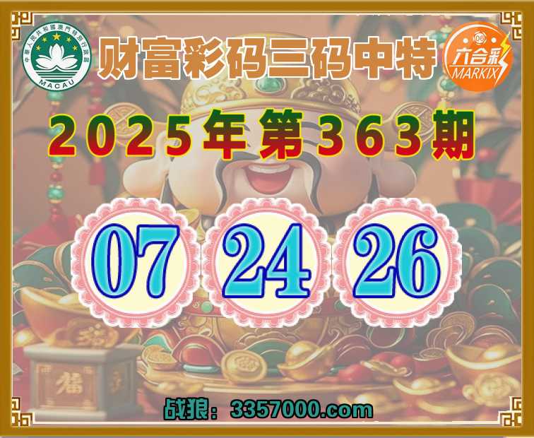 363期: 🌲『财富彩码』 🌲三码中特🌲【07.24.26】开:26准上榜高手